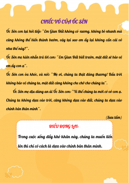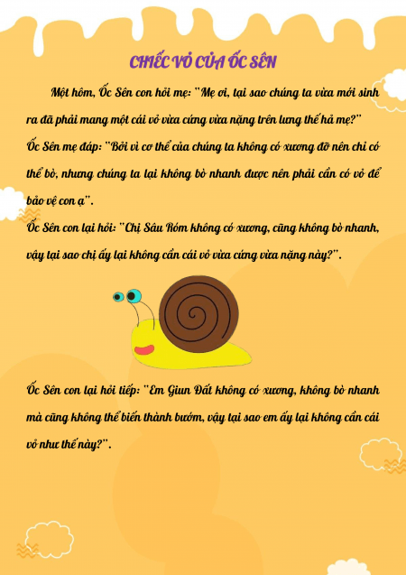 mà cũng không thể biến thành bướm, vậy tại sao em ấy lại không cần cái vỏ như thế này?”. CHIẾC VỎ CỦA ỐC SÊN