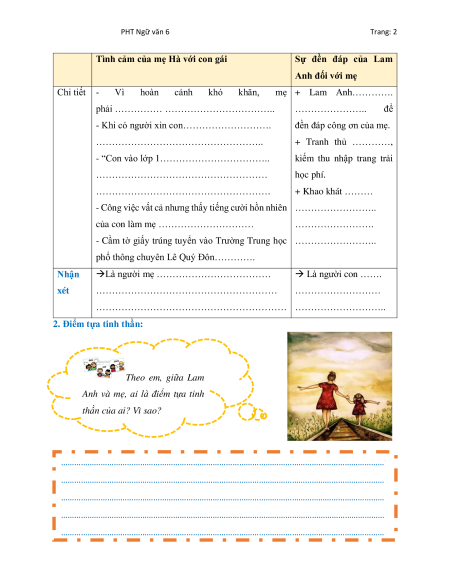 - Từ nhân vật Lam Anh, em thấy bản thân mình đã làm tròn trách nhiệm với cha mẹ mình chưa? PHT Ngữ văn 6 Trang: 2