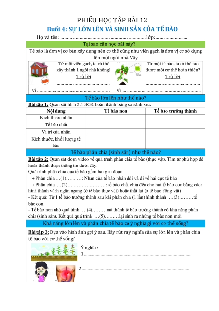 Buổi 4: SỰ LỚN LÊN VÀ SINH SẢN CỦA TẾ BÀO