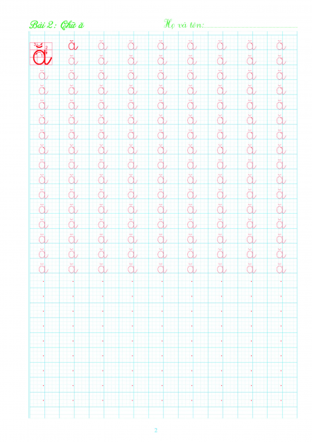 Phiếu tập viết 29 chữ cái tiếng Việt