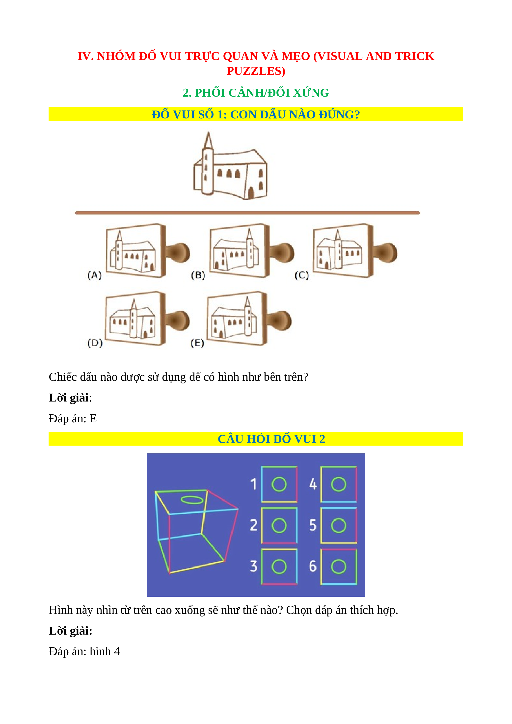 IV. NHÓM ĐỐ VUI TRỰC QUAN VÀ MẸO (VISUAL AND TRICK PUZZLES)