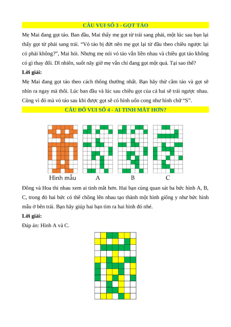 mẫu ở bên trái. Bạn hãy giúp hai bạn tìm ra hai hình đó nhé. Lời giải: Đáp án: Hình A và C. ĐỐ VUI SỐ 5