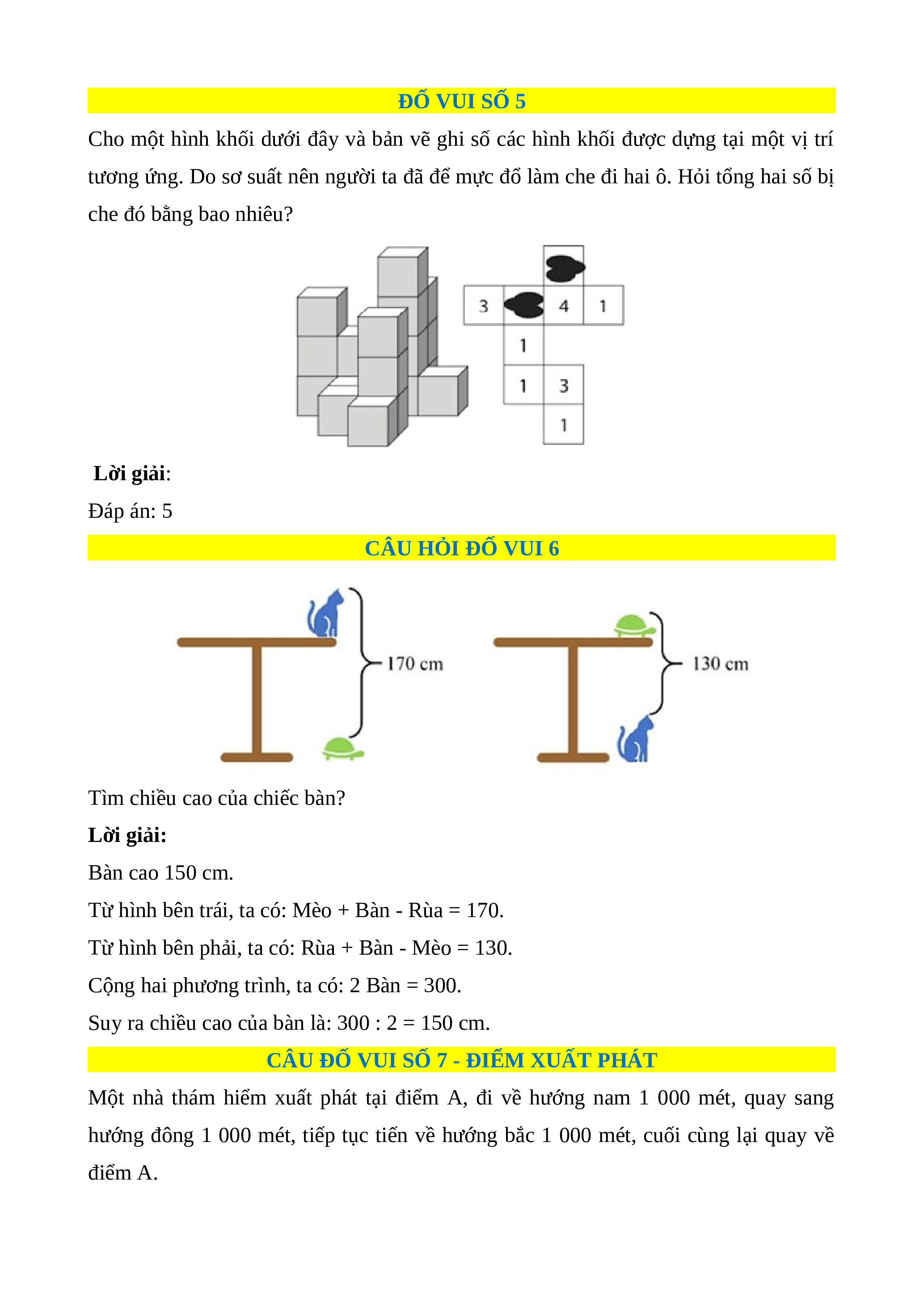 tương ứng. Do sơ suất nên người ta đã để mực đổ làm che đi hai ô. Hỏi tổng hai số bị che đó bằng bao nhiêu? Lời giải: Đáp án: 5 CÂU HỎI ĐỐ VUI 6