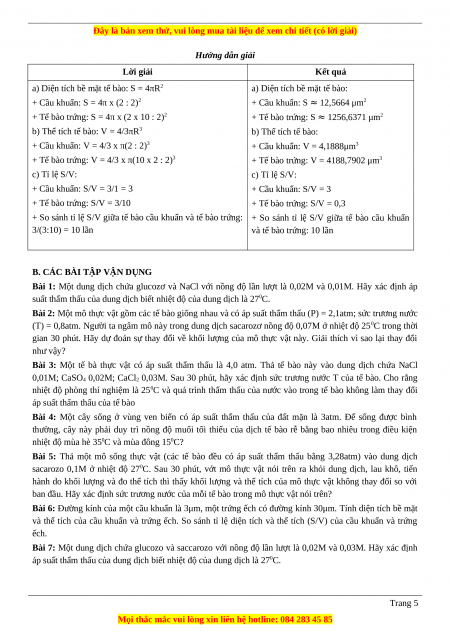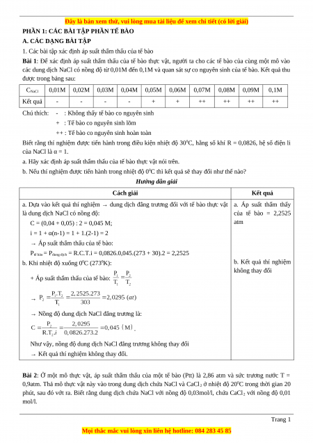 1. Các bài tập xác định áp suất thẩm thấu của tế bào