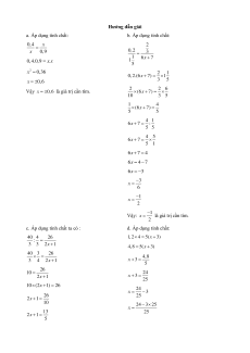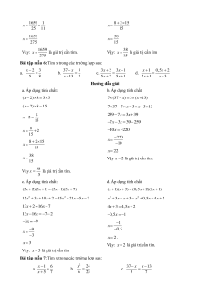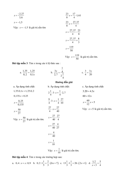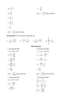 : 6x 7 c. 13 :1 26 :2x 1 d. 1, 2 5 5 3 3 3 x 3 4 Hướng dẫn giải a. Áp dụng tính chất: b. Áp dụng tính chất: 0, 4 x 2 x 0,9 0, 2 3 1 6x 7 0, 4.0, 9 . x x 1 5 2 x 0,36 2 1 0, 2.(6x 7) 1 x 0 ,6 3 5 Vậy 2 2 6 x 0
