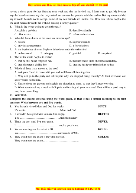 D. What about cooking a meal with Sophie and inviting all your relatives? That will be a good way to stop them quarrelling. C. WRITING