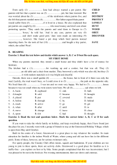 change, the importance of family (8)…………. there. 1. A. dependent B. independent C. independence D. dependence 2. A. in B. from C of D. about 3. A. effective B. influence C. effect D. affect 4. A. refused B. denied C. declined D. turned down 5. A. wake up B. grow up C. grow old D. get up 6. A. closer B. nearer C. close-knit D. next to 7. A. support B. share C. build D. live 8. A. exists B. keeps C. is D. remains