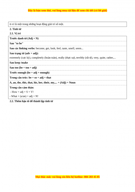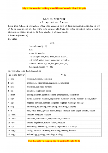 gặp trong các bài tìm lỗi sai, cụ thể được trình bày ở nội dung sau đây. 1. Danh từ (Noun - N) 1.1. Vị trí Vị trí Sau tính từ (adj + N) Sau: - mạo từ: a/an/the