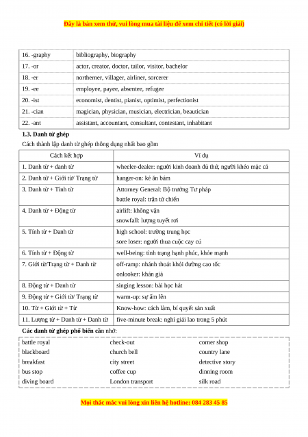 assistant, accountant, consultant, contestant, inhabitant 1.3. Danh từ ghép