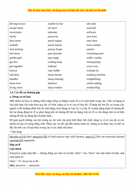 1.4. Các lỗi sai thường gặp a. Dùng sai từ loại