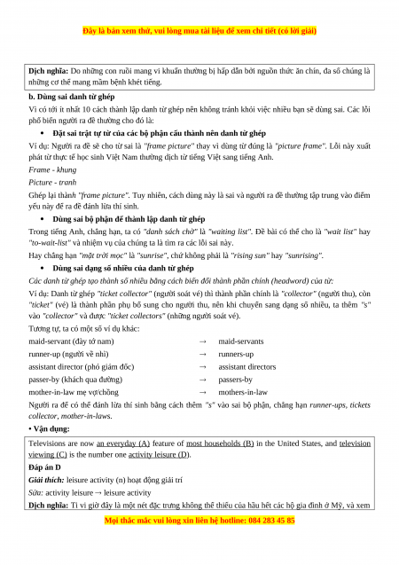 Người ra để có thể đánh lừa thí sinh bằng cách thêm "s" vào sai bộ phận, chẳng hạn runner-ups, tickets collector, mother-in-laws. • Vận dụng: