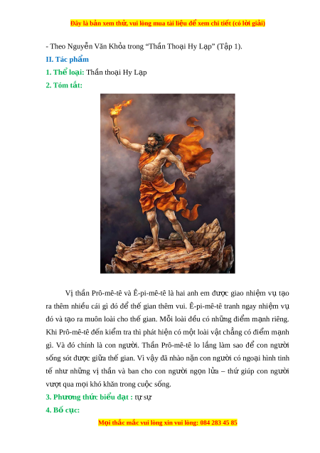 Đây là bản xem th , vu ử i lòng mua tài li u ệ đ xe ể m chi ti t ế (có l i ờ gi i ả ) - Theo Nguy n ễ Văn Kh a t ỏ rong “Th n ầ Tho i ạ Hy L p” ạ (T p 1) â . II. Tác ph m ẩ