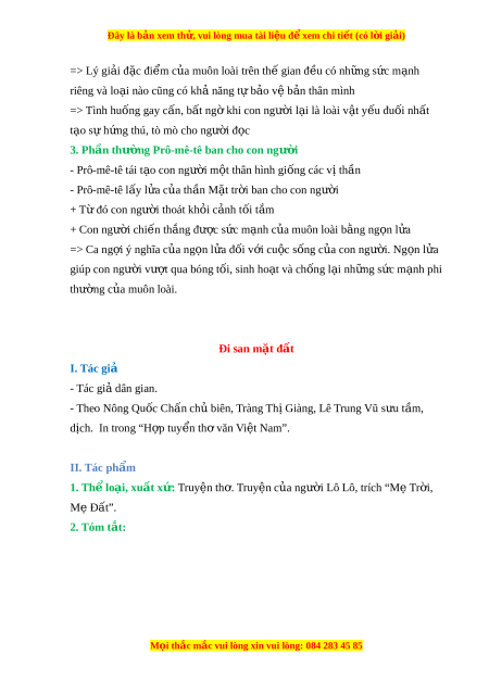 ê heo … Làm th nào bây gi ê ?) ờ : Đ c ặ đi m ể c a các u loài v t â trên th gi ê an - Ph n 3 ( ầ Còn l i ạ ): Ph n t ầ hư ng Pr ờ ô-mê-tê ban cho con ngư i ờ 5. Giá tr n ị i ộ dung: - Lý gi i ả nguồn gôc c a u loài ngư i ờ và loài v t â - Ca ng i ợ ý nghĩa c a ng u n l ọ a ử trong cu c ô s ng ô 6. Giá tr ngh ị t ệ hu t ậ : - S d ử ng t ụ hành công các y u t ê ô kì o ả hoang đư ng ờ - Tình hu ng t ô ruy n gay c ệ n, b ấ t ấ ngờ III. Tìm hi u chi ể ti t ế