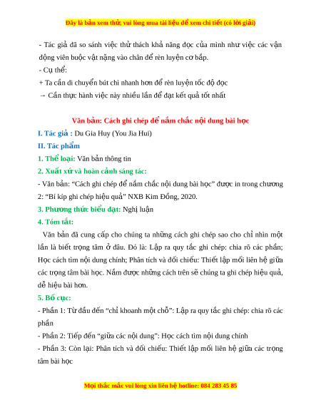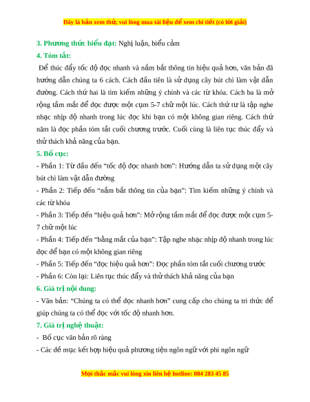 Đây là bản xem th , vu ử i lòng mua tài li u ệ đ xe ể m chi ti t (c ế ó l i ờ gi i ả ) 3. Phư ng ơ th c bi ứ u đ ể t ạ : Nghị lu n, ậ bi u ể c m ả 4. Tóm tắt: Để thúc đ y ẩ t c ố độ đ c ọ nhanh và n m ắ b t ắ thông tin hi u ệ qu ả h n, ơ văn b n ả đã hư ng ớ d n