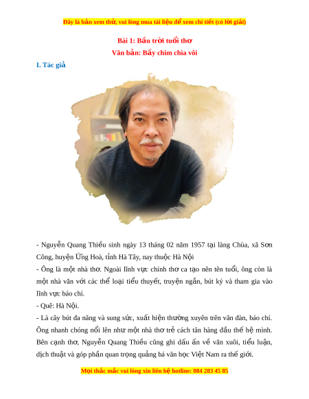 Đây là bản xem th , vu ử i lòng mua tài li u ệ đ xe ể m chi ti t (c ế ó l i ờ gi i ả ) Bài 1: Bầu tr i ờ tu i ổ thơ Văn bản: B y chi ầ m chìa vôi I. Tác giả - Nguy n ễ Quang Thi u
