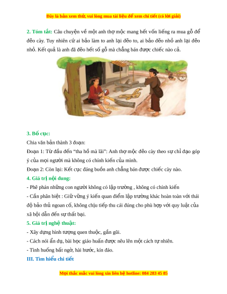 Đây là bản xem th , vu ử i lòng mua tài li u ệ đ xe ể m chi ti t (c ế ó l i ờ gi i ả ) 2. Tóm t t ắ : Câu chuy n ệ về m t ộ anh thợ m c ộ mang h t ế v n ố li ng ế ra mua g ỗ để