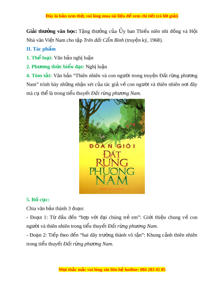 ả “Thiên nhiên và con ngư i ờ trong truy n ệ Đ t ấ r ng ừ phư ng ơ Nam” trình bày nh ng ữ nh n ậ xét c a ủ tác gi ả v ề con ngư i ờ và thiên nhiên n i ơ đây mà cụ th l ể à trong ti u t ể huy t ế Đất r ng ừ phư ng N ơ am. 5. B c ố ục: Chia văn b n t ả hành 3 đo n: ạ - Đo n ạ 1: Từ đ u ầ đ n ế “h p ợ v i ớ đ i ạ chúng trẻ em”: Gi i ớ thi u ệ chung về con ngư i