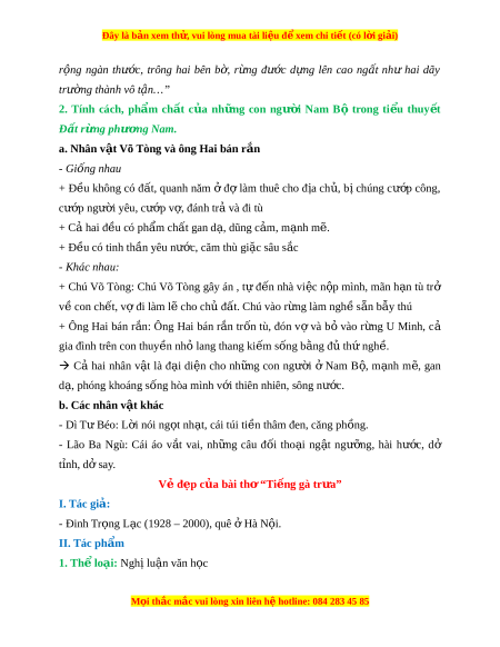 Đây là bản xem th , vu ử i lòng mua tài li u ệ đ xe ể m chi ti t (c ế ó l i ờ gi i ả ) - Đo n ạ 3: Còn l i ạ : Tính cách, ph m ẩ ch t ấ c a ủ nh ng ữ con ngư i ờ Nam Bộ trong ti u t ể huy t ế Đất r ng ừ phư ng N ơ am. 6. Giá tr n ị i ộ dung: - Văn b n ả ca ng i