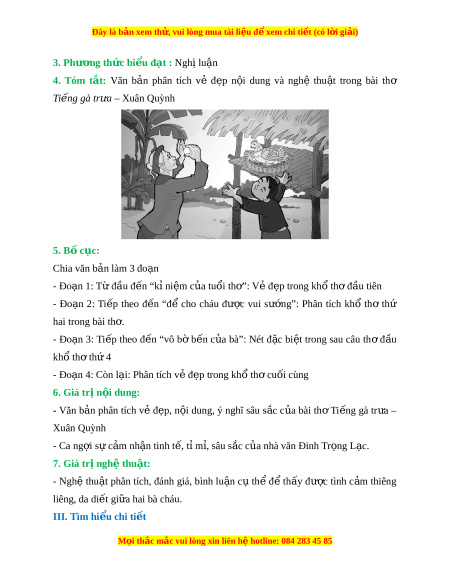 - Văn b n phân tích v đ p, n i dung, ý nghĩ sâu s c c a bài th Ti ng gà tr a –ả ẻ ẹ ộ ắ ủ ơ ế ư