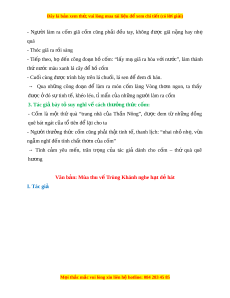 ợ trình bày trên lá chu i ố , lá sen đ đem ể đi bán. → Qua nh ng ữ công đo n ạ để làm ra món c m ố làng Vòng th m ơ ngon, ta th y ấ đư c ợ đó s ở ự tinh t , khéo l ế éo, t m ỉ n c ẩ a ủ nh ng ng ữ ư i ờ làm ra c m ố 3. Tác giả bày t s ỏ uy nghĩ v cách t ề hư ng t ở h c c ứ m ố : - Cốm là m t