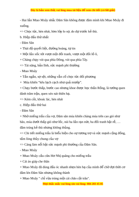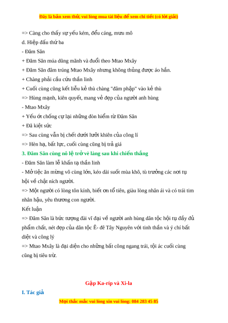 Đây là bản xem th , vu ử i lòng mua tài li u ệ đ xe ể m chi ti t (c ế ó l i ờ gi i ả ) - Ph n 2: ầ Di n ễ bi n ế cu c đ ộ s ọ c gi ứ a ữ Đăm Săn và Mtao Mxay - Ph n 3: ầ Đăm Săn cùng nô l t ệ r v ở l ề àng sau khi chi n t ế h ng ắ 7. Giá tr n ị i ộ dung: - Ca ng i ợ dũng c m ả , tr ng danh d ọ , g ự n ắ bó v i ớ gia đình