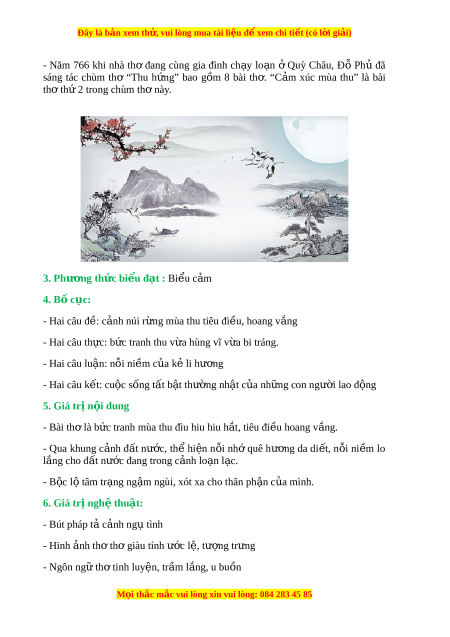 Đây là bản xem th , vu ử i lòng mua tài li u ệ đ xe ể m chi ti t ế (có l i ờ gi i ả ) Bài 2: Th đ ơ ư ng l ờ u t ậ Văn bản: C m ả xúc mùa thu I. Tác giả: - Đỗ Ph ( ủ 712 -770)