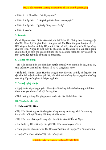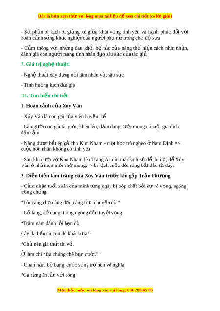 Đây là bản xem th , vu ử i lòng mua tài li u ệ đ xe ể m chi ti t (c ế ó l i ờ gi i ả ) - Số ph n â bi k ch i bi gi ng ă xe gi a ữ khat v ng o tinh yêu va h nh a phuc đ i ố v i ơ hoan c nh s a ống kh c ă nghiêt c a ng u ư i ơ phụ n t ữ rong chê đ x ô a ư - C m a thông v i ơ nh ng ữ đau kh , ô bê t c ă c a u nang thê hi n ê cach nhin nh n, â đanh gia con ngư i ơ mang tinh nhân đ o a sâu s c c ă a u tac gia 7. Giá tr ngh ị t ệ hu t ậ : - Ngh t ê hu t â xây d ng n ư i ô tâm nhân v t â sâu s c ă - Tinh hu ng k ố ch đ i t ă gia III. Tim hi u chi ể ti t ế 1. Hoàn cảnh c a X u úy Vân - Xuy Vân la con gai c a u viên huy n ê Tê - La ngư i ơ con gai tai gi i o , kheo leo, đ m a đang, ư c ơ mong co m t ô gia đinh đâm m â - Nang đư c ơ b t ă ep g cho K a im Nham - m t ô h c t o ro ngheo N ơ am Đ nh => i cu c