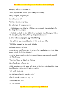 “Chơ cho lua chin bông vang. Đ anh đi ê g t ặ , đ nang m ê ang c m ơ ” => L i ơ hat đư c ơ l p đi ặ l p ặ l i a th hi ê n ê ư c m ơ bi ơ nh d c i a u m t ô cô gai yêu lao đ ng, t ô ân t o, hăng s a ay => L i ơ b c ô b ch n a i ỗ cô đ n va ơ khat khao h nh phuc c a a u cô không th chi ê a se v i ơ lang gi ng, cũng không đ ê ư c ơ sư đ ng c ô m a c a cha u m . e 3. Di n b ê i n t ế âm tr ng kh ạ i g p ă Tr n P â hư ng ơ - C ng ứ l ơ a se g p đ ặ ư c ơ tri âm tri k đ i chi ê a s đ e c ê m a thông “Tôi không trăng gio l i a g p ặ ngư i ơ gio trăng Gio trăng th i ơ m c gi ặ o trăng” => Cô đa vư t ơ qua l gi ễ ao, dam ch y a theo ti ng g ê i o c a t u inh yêu vi hôn nhân do cha me s p ă đ t ặ không co tinh yêu => Cô l i a la n n a nhân la ngư i ơ thi t ê thoi va đang thư ng ơ trong m i ố quan h ê v i ơ Trân Phư ng ơ “Ph K ụ im Nham, say đ m ă Tr n P â hư ng ơ Nên đ n n ê ỗi điên cuông rô d i a ” - Khat v ng t o inh yêu chay b ng, m o t ô cô gai co b n l a inh t t ư in, luôn hanh đ ng ô theo b n năng, a vư t ơ ra kh i o l gi ễ ao phong ki n ê “Đôi ta d t ă diu lên đây Áo gi i a lam chi u, chăn ê quay lam mung” - m Ấ c, ứ b t ê c, cô ă đ n c ơ a X u uy Vân “Tôi thư ng ơ nhân ngai Tôi nh nhân ơ tinh M i