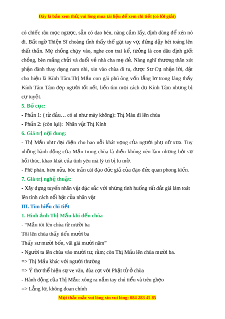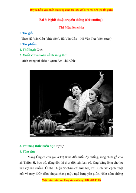 Đây là bản xem th , vu ử i lòng mua tài li u ệ đ xe ể m chi ti t ế (có l i ờ gi i ả ) Bài 5: Ngh t ệ hu t ậ truy n t ề h ng ố (chèo/tu ng) ồ Thị M u l ầ ên chùa I. Tác giả