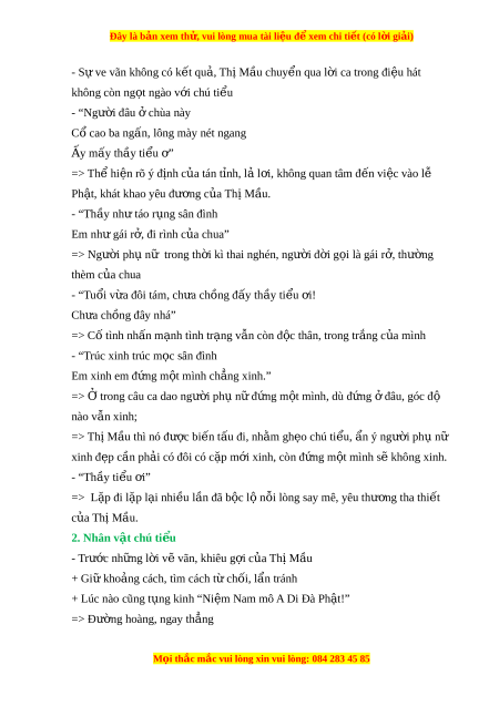 ỗ lòng say mê, yêu thư ng ơ tha thi t ế c a ủ Thi Mầu. 2. Nhân v t ậ chu ti u ể - Trư c ơ nh ng l ữ i ờ vẽ vãn, khiêu g i ợ c a ủ Th M i u ầ + Gi kho ữ ng cách, ả tìm cách t ch ừ i ô , l n t ẩ ránh + Luc nào cũng t ng ki ụ nh “Ni m ệ Nam mô A Di Đà Ph t ậ !” => Đư ng hoàng, ngay ờ th ng ă M i
