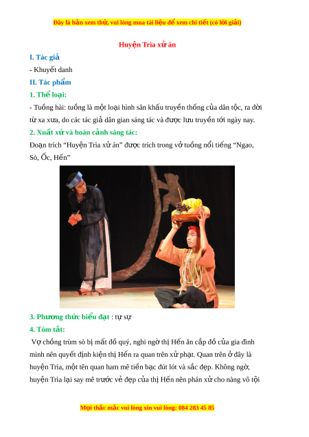 Đây là bản xem th , vu ử i lòng mua tài li u ệ đ xe ể m chi ti t (c ế ó l i ờ gi i ả ) Huy n ệ Tria x án ử I. Tác giả - Khuy t ế danh II. Tác ph m ẩ 1. Th l ể oại: