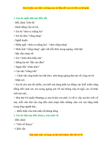 ề nuôi em, em mong ngóng mẹ về mà không ch u ị đi ng , ủ em cứ th c ứ chờ mẹ mãi… + Nhà thơ Vũ Qu n ầ Phư ng ơ xa m ẹ t ừ khi còn nh . ỏ Có l ẽ vì v y ậ mà khi vi t ế về mẹ, m i ỗ v n ầ thơ c a ủ ông đ u ề như ch m ạ đ n ế nh ng ữ c m ả xúc sâu l ng ắ nh t ấ trong lòng ngư i ờ đ c. ọ → Bi u ể hi n c ệ a t ủ ình m u t ẫ t ử hiêng liêng 2. Em bé đ i ợ m đ ẹ n kh ế uya, m m ẹ i ớ về - Bối c nh: ả + “Tr i ờ v khuya” ề - C nh ả v t ậ : M i