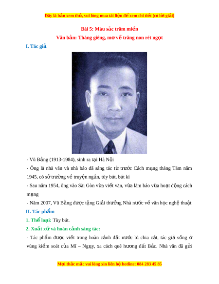Văn bản: Tháng giêng, m v ơ t ề răng non rét ng t ọ I. Tác giả - Vũ B ng ( ằ 1913-1984), sinh ra t i ạ Hà N i ộ