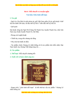ộ dòng ho Ngô Thì ở lang Tả Thanh Oai, huy n ệ Thanh Oai, tr n ấ S n ơ Nam (nay thu c huy ộ n ệ Thanh Trì, Ha N i ộ ). - Phong cach ngh t ệ hu t ậ + Thi t ế tha, trong tr o nh e ng s ư âu l ng ă + Pha chut hai hư c di ớ d m o - Tac ph m ẩ chinh: Hoang Lê nh t ấ th ng ố chi la tac ph m ẩ tiêu bi u ể nh t ấ , Đ i ạ Nam Quốc tuy, Hoang Vi t ệ h ng l ư ong chi, … II. Tác ph m ẩ 1. Thể loại: Ti u t ể huy t ế chư ng h ơ ồi 2. Xuất x và hoà ứ n c nh s ả áng tác: - Đo n ạ trich “ kiêu binh n i ô lo n” ạ la h i ồ th ứ hai c a u tac ph m ẩ “ Hoang Lê nhất thống chi” M i