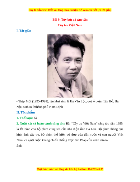 Bài 9. Tùy bút và t n văn ả Cây tre Vi t ệ Nam I. Tác gi : ả - Thép M i