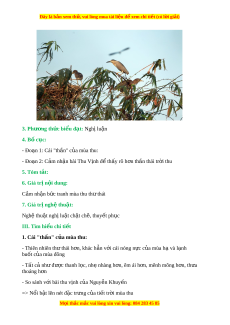 Đây là bản xem th , vu ử i lòng mua tài li u ệ đ xe ể m chi ti t (c ế ó l i ờ gi i ả ) 3. Phư ng ơ th c bi ứ u đ ể t ạ : Nghị lu n ậ 4. B c ố ục: - Đo n 1: a Cái "th n" â c a m ủ ua thu: - Đo n 2: a C m a nh n ậ bai Thu V nh đ ị t ê h y r â o h n t ơ h n t â hái tr i ờ thu 5. Tóm tắt: 6. Giá tr n ị i ộ dung: C m a nh n ậ b c t ư ranh mua thu th t ư hái 7. Giá tr ngh ị t ệ hu t ậ : Nghê thu t ậ nghị lu t ậ ch t ă ch , t ẽ huy t ế ph c ụ III. Tìm hi u chi ể ti t ế 1. Cái "thần" c a m u ùa thu: - Thiên nhiên th t ư hái h n, khác ơ h n v ă i ơ cái nóng n c c ự a m ủ ua h va l a nh a buốt c a m ủ ua đông - Tât c nh a đ ư ư c ơ thanh l c, nh o nhang h ẹ n, ơ êm ái h n, m ơ ênh mông h n, t ơ h a ư thoáng h n ơ - So sánh v i ơ bai thu v nh c ị a ủ Nguy n K ê huy n ế => Nôi b t ậ lên net đ c t ă r ng c ư a t ủ i t ế tr i ờ mua thu M i ọ thắc m c