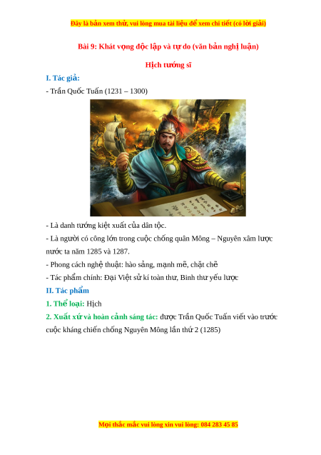 Đây là bản xem th , vu ử i lòng mua tài li u ệ đ xe ể m chi ti t ế (có l i ờ gi i ả ) Bài 9: Khát v ng đ ọ c l ộ p và t ậ do ( ự văn b n ng ả h l ị u n) ậ H ch t ị ư ng s ớ ĩ I. Tác giả: