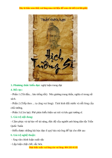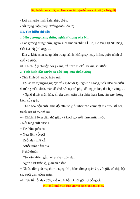 Đây là bản xem th , vu ử i lòng mua tài li u ệ đ xe ể m chi ti t ế (có l i ờ gi i ả ) - L i ờ văn giàu hình nh, ả nh c đi ạ u. ệ - S d ử ng ụ biện pháp cư ng đi ờ ệu, ẩn dụ III. Tìm hi u chi ể ti t ế 1. Nêu gư ng t ơ rung th n, nghĩ ầ a sĩ trong s s ử ách - Các gư ng ơ trung th n, nghĩ ầ a sĩ hi sinh vì ch : ủ Kỉ Tín, Do Vu, D N ự hư ng, ợ Cốt Đãi Ng t ộ Lang, …