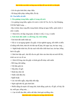 ề rung thành, không sợ nguy hi m ể , quên mình vì ch vì ủ nư c. ớ => Khích l ý chí ệ l p công danh, ậ x t ả hân vì ch , vì ủ vua, vì nư c ớ 2. Tình hình đ t ấ nư c và n ớ i ỗ lòng c a ch ủ t ủ ư ng ớ - Tình hình đất nư c hi ớ n t ệ i ạ : + T i ộ ác và s ngang ng ự ư c ợ c a gi ủ c: ặ đi l i ạ nghênh ngang, uốn lư i ỡ cú di u ề sỉ m ng t ắ ri u đì ề nh, thân dê chó b t ắ n t ạ t ph ể , đòi ụ ng c ọ l a, t ụ hu b c ạ vàng, … => Nghệ thu t ậ nhân hóa, ẩn d v ụ ch ạ tr n b ầ n ả ch t ấ tham lam, tàn b o, h ạ ng ố hách c a ủ gi c ặ + C nh ả báo h u qu ậ ả , thái đ c ộ a ủ tác gi : ả khác nào đem th t ị mà nuôi h đói ổ , tránh sao tai vạ v s ề au => Khích l l ệ òng căm thù gi c và ặ kh i ơ g i ợ n i ỗ nh c ụ m t ấ nư c ớ - Nỗi lòng ch t ủ ư ng ớ + T i ớ b a quên ăn ữ + N a đêm ử vỗ g i ố + Ru t ộ đau như c t ắ + Nư c m ớ t ắ đ m ầ đìa - Nghệ thu t ậ : + Câu văn bi n ề ng u, nh ẫ p đi ị u d ệ n d ồ p ậ + Ngôn ng ữ ư c ớ l , gi ệ àu hình nh ả + Nhi u đ ề ng t ộ m ừ nh ạ ch t ỉ r ng ạ thái, hành đ ng: ộ quên ăn, v g ỗ i ồ , x t ẻ h t ị , l t ộ
