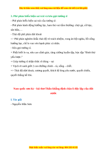 => Phê phán nghiêm khắc thái đ vô t ộ rách nhi m ệ , vong ân b i ộ nghĩa, l i ố s ng ố hư ng ở l c, ch ạ l ỉ o vun vén h nh ạ phúc cá nhân. - Kêu g i ọ tư ng ớ sĩ. + Ph i ả bi t ế lo xa, nêu cao c nh ả giác, tăng cư ng ờ luy n t ệ p, ậ h c t ọ p ậ “Binh th ư y u l ế ư c. ợ ” + Giúp tư ng ớ sĩ nh n t ậ h c ứ rõ đúng – sai + V ch r ạ õ ranh gi i ớ 2 con đư ng chí ờ nh – tà, s ng – ch ố t ế . => Thái đ d ộ t ứ khoát, cư ng ơ quy t ế , khích l l ệ òng yêu nư c, quy ớ t ế chi n, ế quy t ế th ng ắ k t ẻ hù. Nam qu c s ố n hà – bài ơ th ơ Th n k ầ h ng đ ẳ nh châ ị n lí đ c ộ l p c ậ a đ ủ t ấ nư c ớ I. Tác giả - Nguy n H ễ u S ữ n ơ M i ọ thắc m c