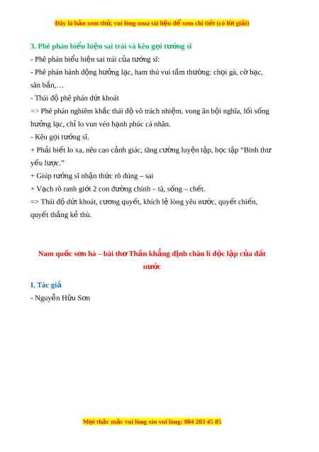 Đây là bản xem th , vu ử i lòng mua tài li u ệ đ xe ể m chi ti t (c ế ó l i ờ gi i ả ) 3. Phê phán bi u hi ể n s ệ ai trái và kêu g i ọ tư ng s ớ ĩ - Phê phán bi u hi ể n s ệ ai trái c a t ủ ư ng ớ sĩ: - Phê phán hành đ ng h ộ ư ng ở l c, ham ạ thú vui t m ầ thư ng: ờ ch i ọ gà, c b ờ c, ạ săn b n,… ắ - Thái đ phê phán ộ d t ứ khoát