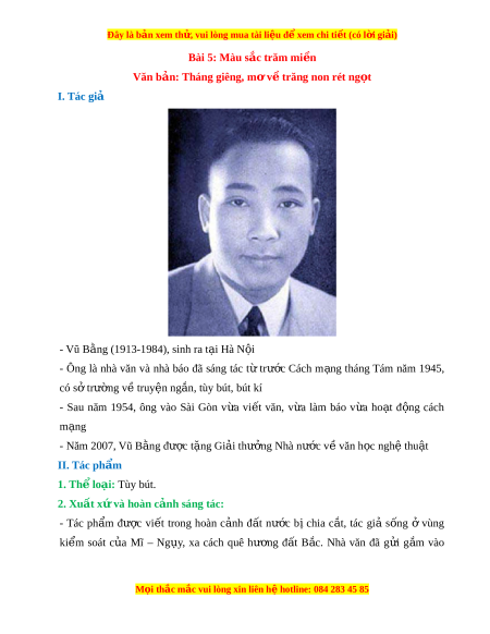 Văn bản: Tháng giêng, m v ơ t ề răng non rét ng t ọ I. Tác giả - Vũ B ng ( ằ 1913-1984), sinh ra t i ạ Hà N i ộ