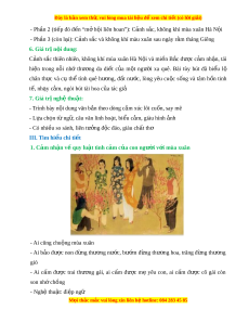 rong thiên nhiên và con ngư i ờ + Mùa xuân th n t ầ hánh ⇒ Mùa xuân đã kh i ơ d y ậ s c ứ s ng ố cho muôn v t ậ , muôn loài và cho c ả con ngư i ờ . Mùa xuân đ t ấ B c ắ có nh ng ữ nét đ c ặ tr ng ư riêng mà không n i ơ nào có đư c. ợ T t ấ cả đư c ợ thể hi n ệ trong tình yêu và n i ỗ ni m ề thư ng ơ nhớ mùa xuân đ t ấ B c ắ c a ủ tác giả M i