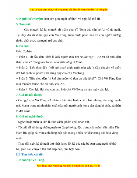 + Phần 4: Còn lại: Hai cha con tạm biệt chú Võ Tòng và hẹn ngày gặp lại.