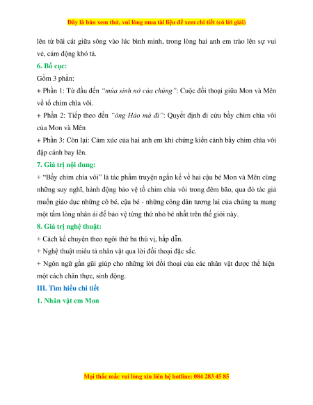 + Phần 3: Còn lại: Cảm xúc của hai anh em khi chứng kiến cảnh bầy chim chìa vôi đập cánh bay lên.