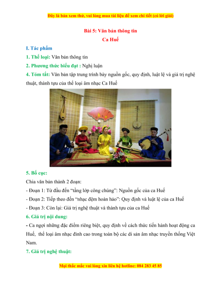 Bài 5: Văn bản thông tin Ca Huế I. Tác phẩm