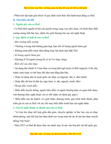 - Phân tích lập luận giải thích về quy định cách thức tiến hành hoạt động ca Huế