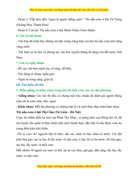 - Đoạn 1: Từ đầu đến “được dùng để cúng thần”: Thi nấu cơm ở hội Thị Cấm (Từ Liêm – Hà Nội)