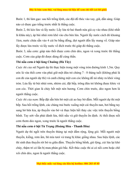 - Đoạn 2: Tiếp theo đến “là người thắng cuộc”: Thi nấu cơm ở hội làng Chuông (Hà Nội)