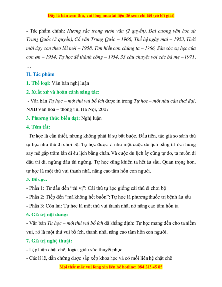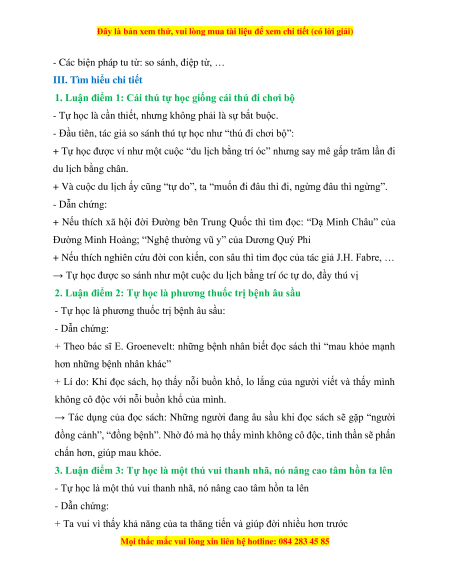 - Phần 3: Còn lại: Tự học là một thú vui thanh nhã, nó nâng cao tâm hồn ta
